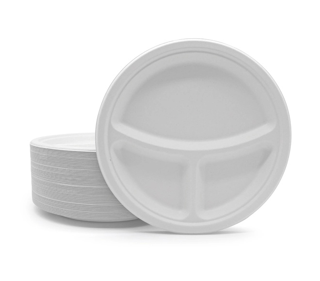 10” 3-comp plant fiber corn plates biodegradable are produced by Luzhou pack with a big size popular in USA, Canada, Holland, UK, France, Mexico. These eco products sugarcane plates wholesale are made of biodegradable sugar cane fibers, and are a great alternative to having plastic plates at the event, that can carry lots of foods, such as candy, cake, cold food, pizza, salad, snack. Suit for all occasions with water and oil proof, microwave safe and freezable performance, including weddings, BBQ, birthdays, camping, picnics, serving plates at a restaurant, or an ecology conscious home. Contact us and get sugar cane waste paper plates now!