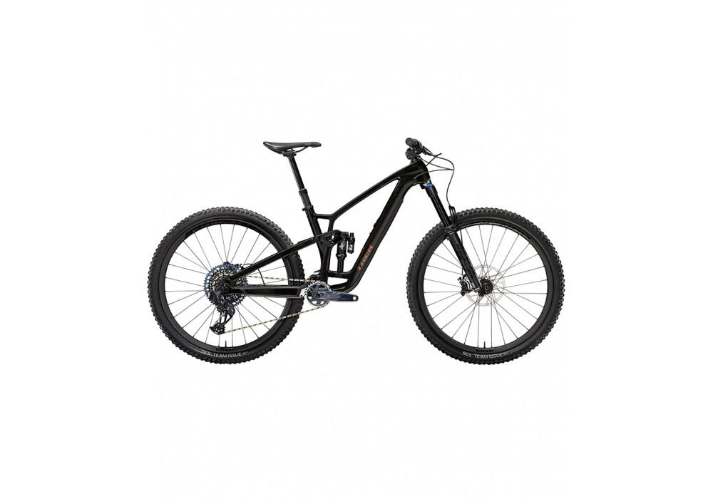 Fuel EX 9.8 is a hard-charging trail bike with a light and stiff carbon frame that's smooth, quiet, and holds its own when you pick a line. It's loaded with the latest tech like a wireless SRAM GX AXS drivetrain that's super clean looking and customizable. 150mm front and 140mm rear suspension keep you in control on the roughest trails and it's all topped off with carbon Bontrager wheels with a quick-engaging hub.
