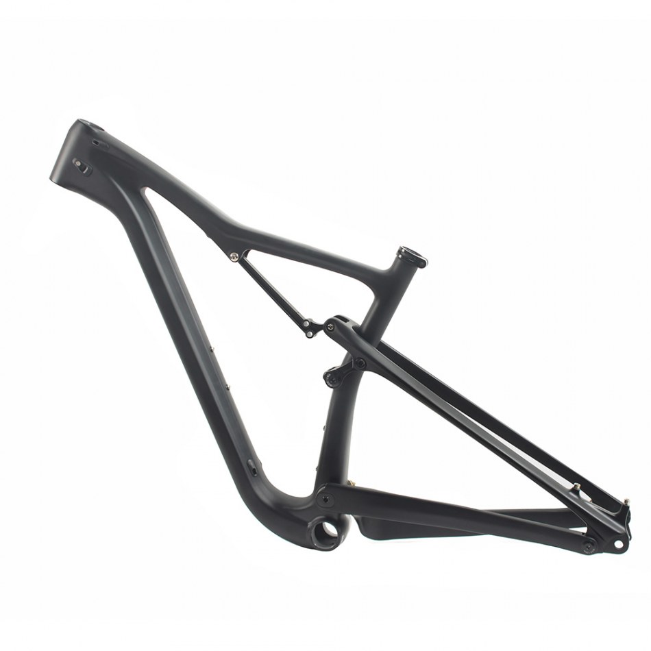 WCB-M-145(29ER) Material: full carbon fiber Weave: UD Include:Frame Headset size: top 1-1/8 down 1-1/2 Seatpost: 31.6mm BB: BB92 Size: 15.5/17.5/19/21 Rear shock size: 190*51mm Brake Type: Disc Brake (rear 160mm /180mm rotor) Single Crankset Max teeth 34T . Front travel: 100mm Rear travel: 100mm Rear Hanger: 142*12mm or 148*12mm Max Tire: 29*2.3" Cables routing: All internal Test: CEN SGS Warranty: 2 years