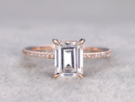 6x8mm Emerald Cut Moissanite Engagement ring Rose gold,Diamond wedding band,Solitaire...