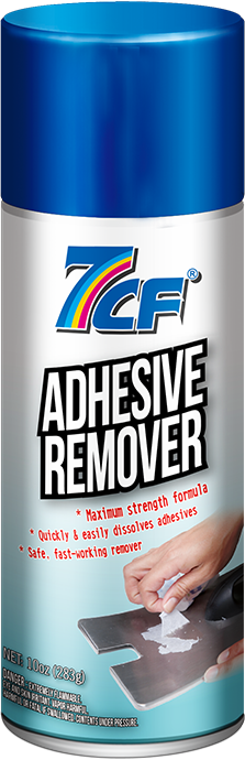 7CF® Car safe adhesive remover delivers powerful fast-acting formula to quickly remove adhesive & label residue, stickers, decals, tape, tar, sap, bugs, grease and other sticky substances on treated and untreated parts of metal, glass, wood, fabric, ceramic, stone and various types of plastics.