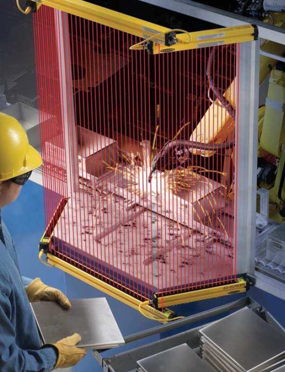 Non-contact machine guarding systems protect fingers, hands and ankles, and guard perimeters and access, using self-contained emitters and receivers without a separate control box.