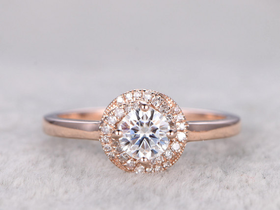 - brilliant Moissanite Engagement ring Rose gold,Plain gold band,Diamond floral halo,14k,5mm Round,Gemstone Promise Bridal Ring,Anniversary