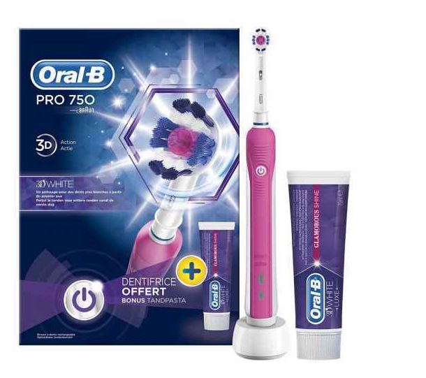 Brosse à dents Oral B Pro 750 avec son dentifrice de 75ml rose et blanc