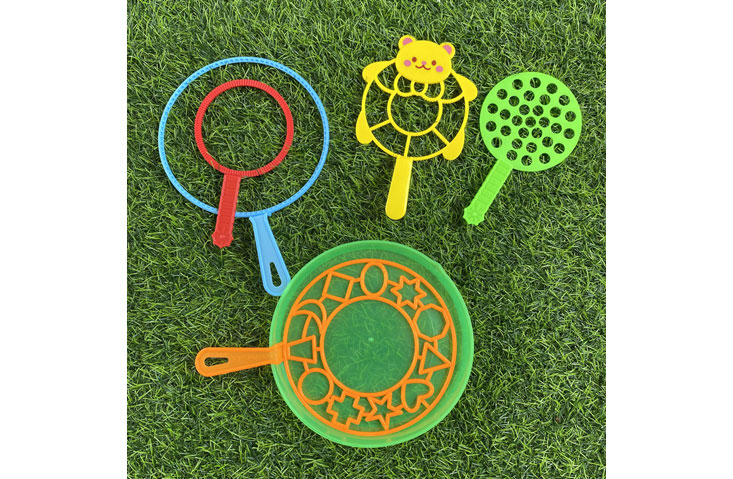Playing bubble wand game can bring lots of fun to kids, families and friends. You can make bubble at park, yard, playground, lawn in any time you want.Bubble wands set is made of plastic, safe for children. But please be careful not to let the bubble water miss-fall into the mouth or eyes.
