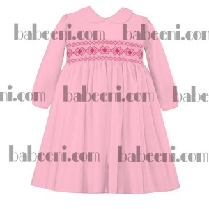Feature: pink dress with striking traditional geometric hand smocked