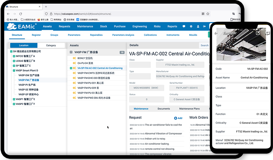 A facilities asset management system is a Computerized Maintenance Management System (CMMS) platform designed to enable facility managers to implement comprehensive maintenance management activities. Equipment management is the management of the whole process of the equipment life cycle, including the management of the whole process of selecting equipment, using equipment correctly, maintaining and repairing equipment, and upgrading equipment. The equipment movement process can be divided into two states, namely the material movement form and the capital movement form of the equipment. The material movement form of equipment refers to the whole process of equipment starting from research, design, manufacture or from purchase and acceptance into the production field, through use, maintenance, repair, update, transformation until scrapping and exiting the production field. The management is called the technical management of the equipment; the capital movement of the equipment, including the initial investment of the equipment, operating costs, depreciation, income, and the measures and use of its own renovation, etc, the management of this process is called the economic management of the equipment. Equipment management includes both the technical management of equipment and the economic management of equipment. The technical management of equipment and economic management are organically linked and mutually unified.