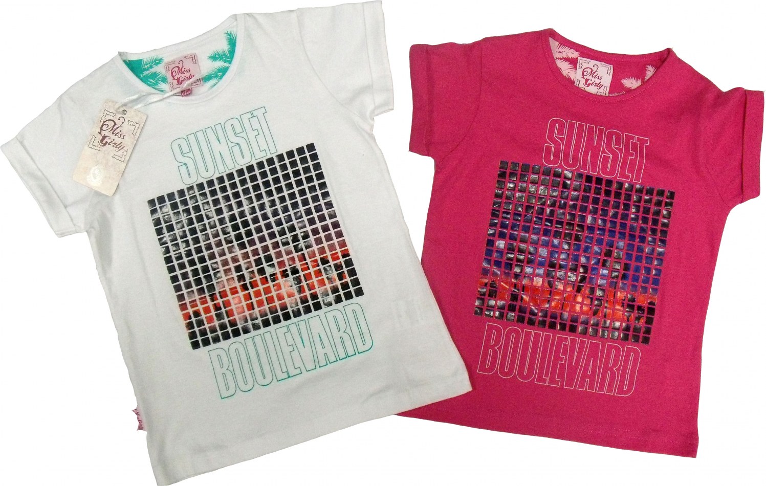 Tee-shirts manches courtes en coton pour filles pour filles 3-8 ans.100% coton. Blanc/Fushia/Noir