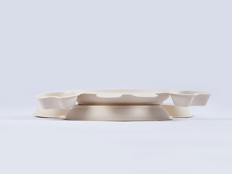 Raw materials of our biodegradable serving platters come from nature, safe and hygienic, biodegradable and compostable. Clients can enjoy a healthier life by using such molded plant fiber plates. The bottom of the plate has a non-slide design so that the food in the plate won't drop out easily.