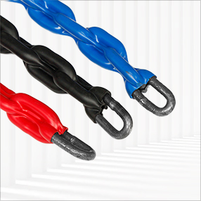 The plastic-wrapped compensation chain has less noise when running, and is mostly used in elevator projects with low load and speed.