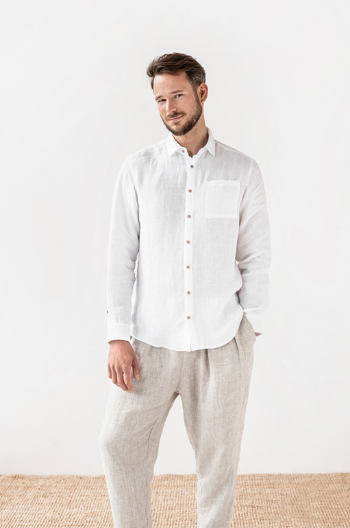 This lightweight shirt is made from 100% hemp for comfort and durability, it's a must have item in casual clothes for men. We've given it a stylish collar for a modern look. The regular fit (with a slightly tailored waist) is comfortable enough to take you through to Sunday brunch.