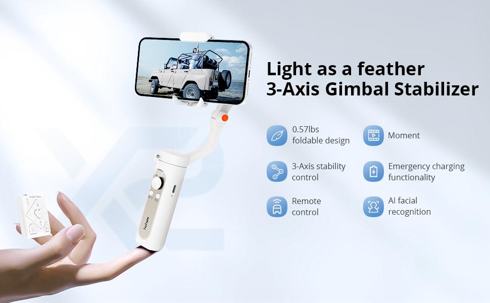 Besides using the ergonomic handle, this phone stabilizer has also developed to a more comfortable, anti-slip, and stain-resistant material to improve the user experience. Also, this handheld gimbal features a 1/4 inch screw port suitable for extension rods and other accessories.