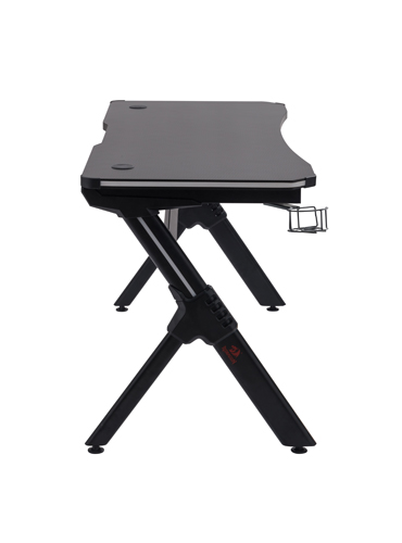 Computer desk with Led lighting. Plug the LED into a gaming PC or laptop with a USB port. LED lights emit cool blue light, providing a better casual and gaming experience. The ergonomic carbon-fiber top has a smooth carbon-fiber texture and plenty of room on the surface for a monitor, keyboard and other items. Healthy panel materials, sturdy table top Sturdy metal and wood are used to construct the frame, ensuring the table top has good carrying capacity and longer use time.