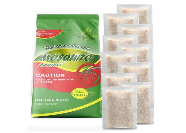 Sanspest easy homemade mosquito repellent, the natural and effective solution for keeping mosquitoes at bay. Our product is made with 100% natural ingredients and essential oils, making it safe for people, pets, and the environment. Simply place the pouches where you want to repel mosquitoes, whether it be your home, yard, or even on your camping trip. Our long-lasting formula provides protection for up to 30 days, giving you peace of mind and uninterrupted outdoor enjoyment. Say goodbye to pesky mosquitoes and hello to the outdoors with Sanspest Mosquito Repellent Pouches.