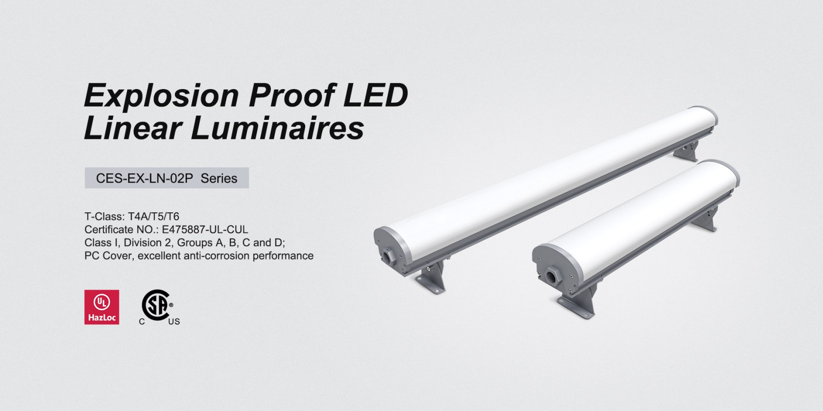 Vous cherchez à remplacer votre lampe fluorescente antidéflagrante traditionnelle? Découvrez notre lumière linéaire LED antidéflagrante de la série CES-Ex-LN-02P (UL844, UL1598A). Conçue pour les endroits dangereux de classe 1 Division 2, cette lumière est certifiée pour une utilisation dans les environnements des groupes A, B, C et D avec le certificat NO. : E475887-UL-CUL.