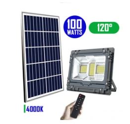 Ce modèle solaire 100W, comme rendu lumineux est conçu pour une haute résistance à toutes les saisons avec une durée d'utilisation de 50 000 heures minimum. La partie extérieure de la lampe se compose d'un revêtement en aluminium renforcé, solide et imperméable à l'infiltration d'eau, de poussière ou d'éventuels insectes.
