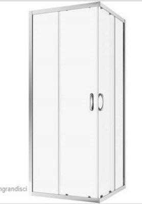 Cabine de douche rectangulaire réversible, composée de deux portes coulissantes réversibles en verre trempé transparent de 4 mm d'épaisseur, profils chromés et poignée.