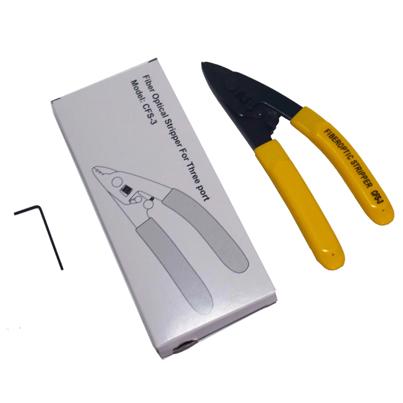 The 140-µm diameter hole and V-opening in the blades allows removal of 250-µm buffer coating from 125-µm fiber. By using the fiber cable stripping tool, or miller fiber stripping tool, you can improve your effciency. The specific information about the fiber optic kit tools, you can look at the chart below. Welcome to order our miller fibre stripping tool.