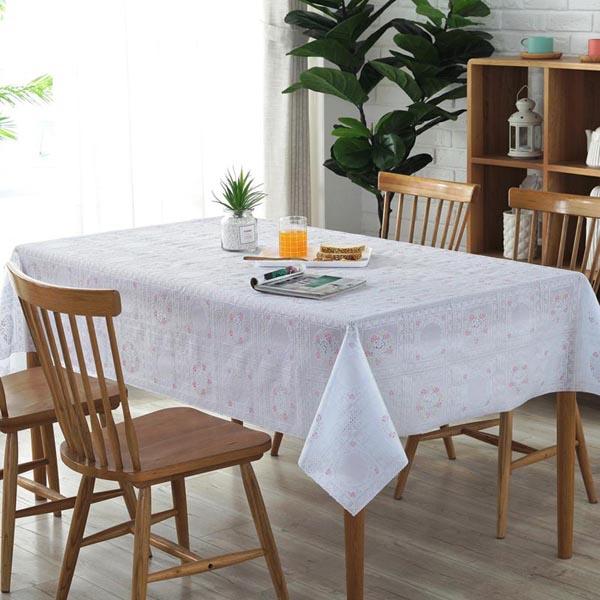 All of our tablecloths are produced from 100% vinyl material. These vinyl tablecloths (also called pressed PVC table cloth) are given with hot-stamping material on a surface as double colors or only pure color.